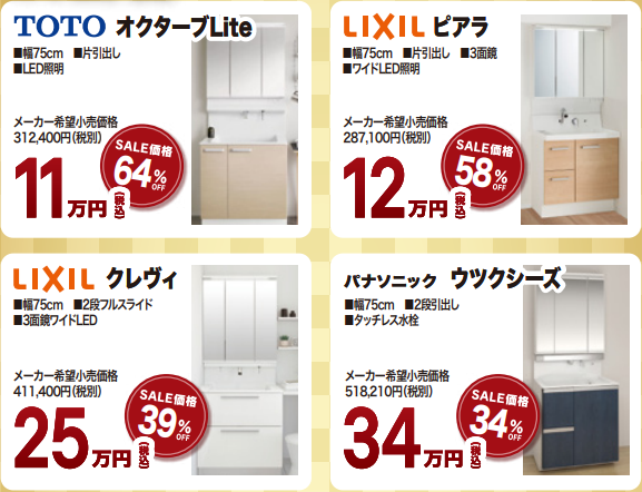 ※特典1セット割は中面掲載の組み合わせに限ります。(福袋水廻り4点セットは除く)
